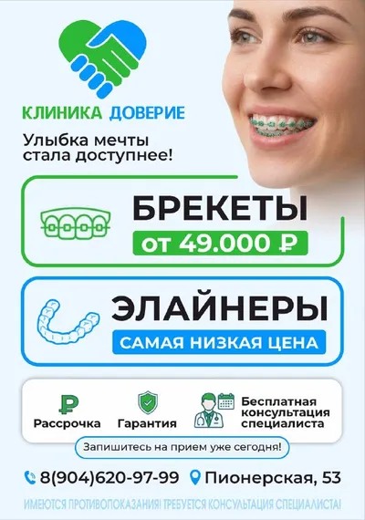 Перестаньте мечтать — начните улыбаться! 🌟 Ваша «улыбка мечты» теперь ближе, чем кажется. В клинике «Доверие» мы доказываем: безупречные зубы — это не роскошь, а доступная реальность. ✅ Брекеты от