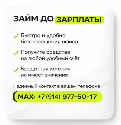 Займ на карту до зарплаты ✅ Получите деньги быстро и удобно без посещения офиса! 📌 Средства поступят на вашу банковскую карту мгновенно. 🔥 Кредитная история не влияет на решение. 💯 Для связи