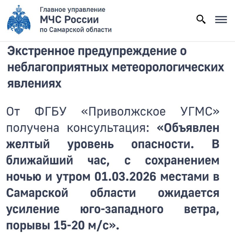 ⚠️Экстренное предупреждение от МЧС. В регионе ожидается сильный ветер. 🫡Подписаться на Новости