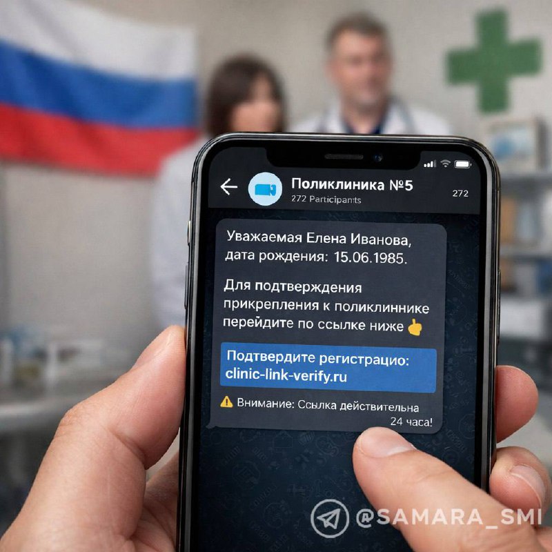 ❗️Россиян массово добавляют в фейковые «чаты поликлиник» В сообщениях указывают реальные ФИО и дату рождения жертвы, после чего просят перейти по ссылке для «подтверждения прикрепления к поликлинике»