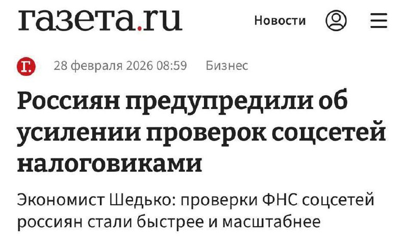 😑 Налоговая усилила мониторинг соцсетей россиян В поле анализа попадают публикации с фотографиями и видео из отпусков, сведения о дорогостоящих покупках, а также другие элементы роскошного образа жи