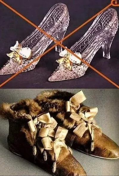 В хрустальные башмачки Золушку "переобули" переводчики Существует версия, что в оригинале сказки про работящую и очень удачливую девушку в описании ее обуви фигурировало слово vair ("беличий мех"), к