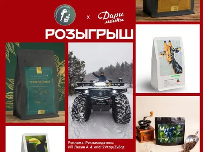 🎁 Дарим адреналин и кофе! Собрали особенные призы. Первый счастливчик получит увлекательный подарок от «Дари Мечты» – катание на огромном бигфуте для двоих. Второй и третий победитель получат подар