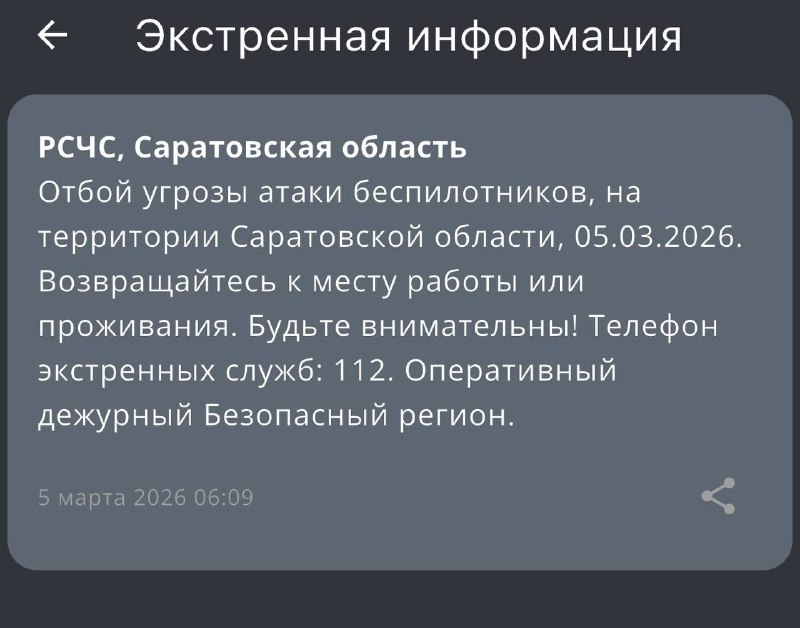 Пришло СМС оповещение об отмене угрозы БПЛА ✔️ Поддержать наш канал голосом! 📲 Мы в МАХ 🤩 ЧП Саратов Прислать новость