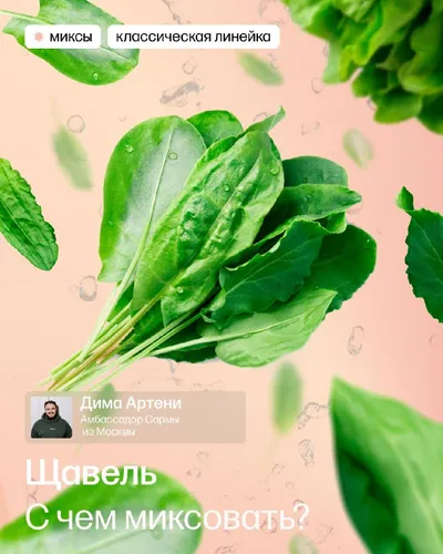 Миксы с щавелем Планируешь чилловые выходные или собираешься на Прогрев, чтобы узнать о новинках индустрии? Добавь в планы попробовать миксы с Щавелем — одним из самых популярных ароматов Сармы. Дим