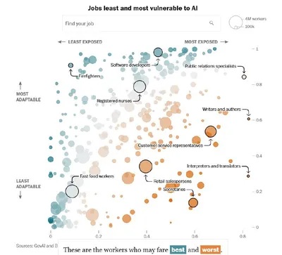 Будущее рынка труда в эпоху AI: кто окажется в зоне риска и кто сможет адаптироваться к новой реальности Исследователи из организации GovAI, занимающейся вопросами технологической политики, и Брукинг