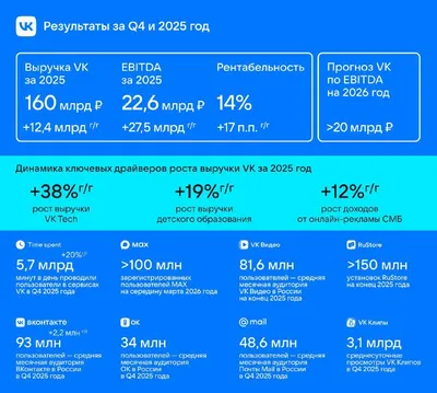 💙 Отчет VK за 2025 год: темпы роста выручки продолжили замедляться, чистый убыток заметно уменьшился, фокус — на рекламе и социальной коммерции VK представил аудированную отчетность за IV квартал 20