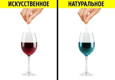 Как отличить натуральное вино от искусственного? При добавлении щепотки обычной пищевой соды натуральное вино изменит свой цвет благодаря реакции с виноградным крахмалом. Синтетическое останется таки