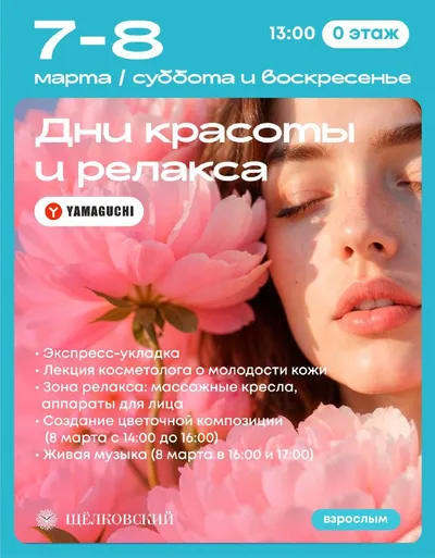 🌺7 и 8 марта ТРЦ «Щёлковский» приглашает вас на «Дни красоты и релакса» совместно с Yamaguchi🌺 В преддверии Международного женского дня ТРЦ «Щёлковский» подготовил для вас праздничную программу, по