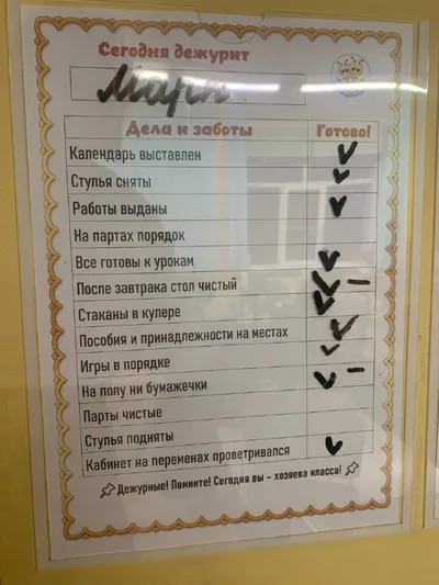 ✔️ Мы начали дежурство по классу. В принципе давно бы надо, но руки дошли только сейчас))) 📎 Дежурных миксую по-разному: сейчас будем дежурить по одному. Потом партами, потом парами по желанию, пото