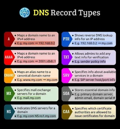 📝 DNS-записи - справочник, который должен знать каждый 👋 Привет, сетевой друг! DNS работает не одной записью, а целым набором типов. Каждый отвечает за свою задачу, разберём все по порядку. 🟣A