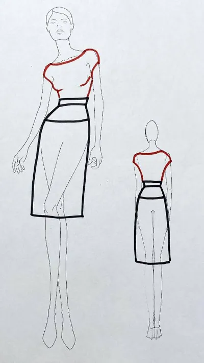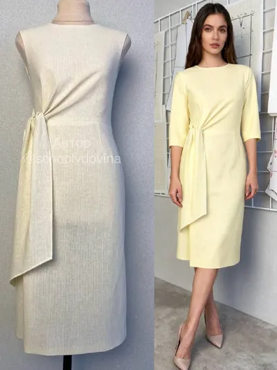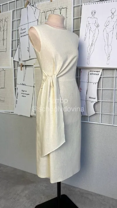 Макет платья прилегающего силуэта с завязкой. Ранее рассказывала про это платье. Показываю еще фото для наглядности. Платье я моделировала на основе базовой выкройки платья прилегающего силуэта. П