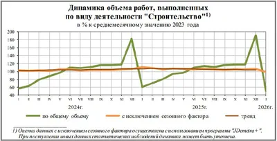 ⚡️ Росстат 4 марта опубликовал данные по социально-экономическому положению России за январь 2026 года 🏡 Объем работ, выполненных по виду деятельности "Строительство", в январе 2026 г. составил 777,