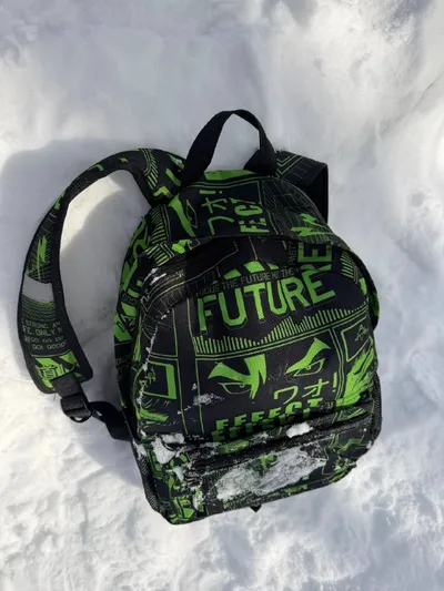 В ледовом городке кто-то забыл свой рюкзак справа от главной горки