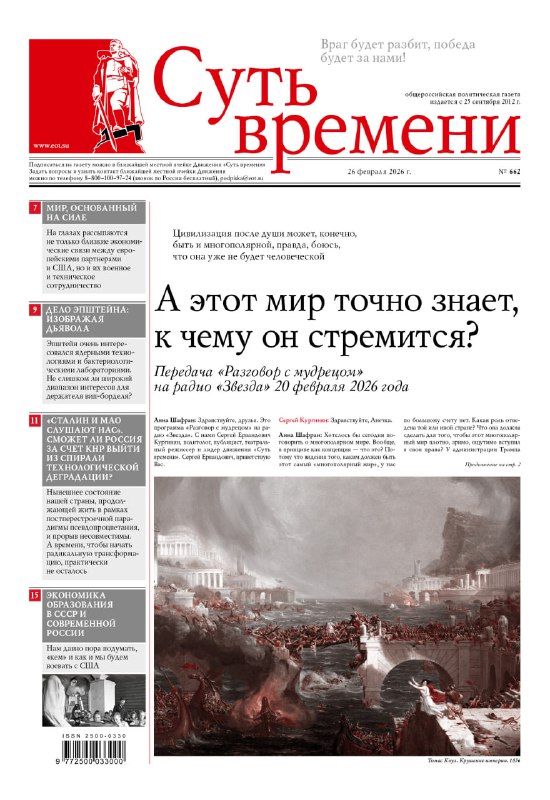 НОВЫЙ НОМЕР Газета «Суть времени» №662 ◽️А этот мир точно знает, к чему он стремится? ◽️Скажите, война будет? ◽️Мир, основанный на силе ◽️Дело Эпштейна: изображая дьявола ◽️«Сталин и Мао слушают нас