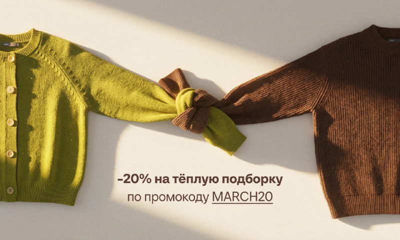 Обещаем, от этого письма вам точно станет теплее: в SELA скидка 20% на подборку верхней одежды и вязаных товаров по промокоду MARCH20 Только 3 и 4 марта на сайте и в приложении 💚 SELA