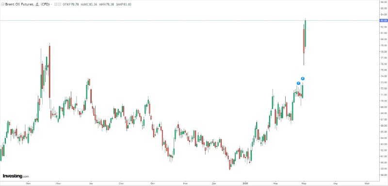 ⏺ Цена нефти Brent впервые с 22 июля 2024 года превысила $83 за баррель 📊 На 13:39 мск котировки фьючерсов на сорт Brent на бирже ICE поднялись на 7,23%, до $83,36 за баррель ❗️UPD. К 13:59 мск рос