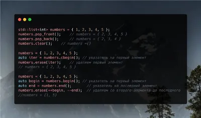 Удаление элементов Для удаления элементов из контейнера list могут применяться следующие функции: clear(p): удаляет все элементы pop_back(): удаляет последний элемент pop_front(): удаляет первый э