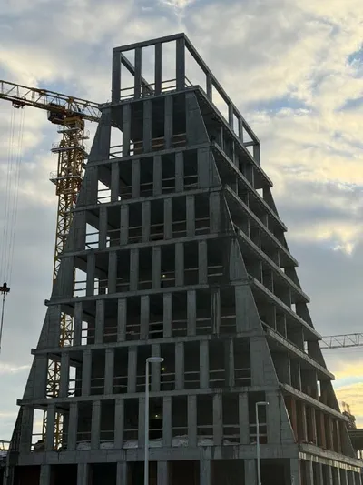 Цвет и форма. Премилый район Яналиф подрастает в Казани. Цвет и форма делают положенное им дело по гармонизации и эстетическому заполнению внушительного пространства. В Татарстане жилая пирамидка, п