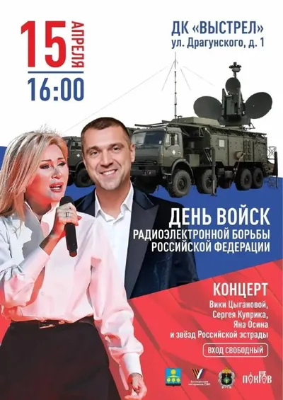 УЖЕ СЕГОДНЯ, СОЛНЕЧНОГОРСК! 15 апреля - День войск радиоэлектронной борьбы. Праздник тех, кто защищает наше небо. В ДК «Выстрел» - мощный концерт! В программе: 🎤 Вика Цыганова 🎸 Заслуженный артис