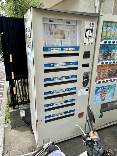 Раритетный автомат по продаже газет в Японии. Вещь, которая в 80-90е годы была обычной частью улицы, а сейчас давно ушла в прошлое. Можно купить разные газеты. Даже спортивная газета продается. Я по