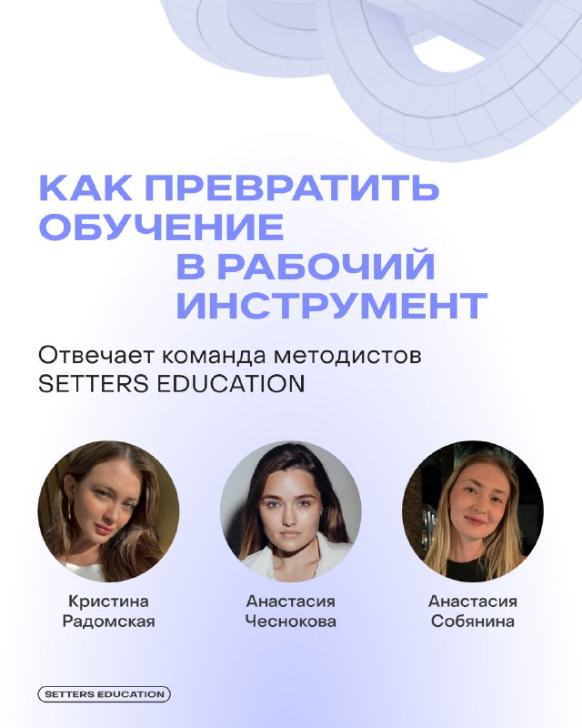 ОбразованиеВыбирайте курсы для руководителей, компаний и команд здесь: https://setters.education/ Пишем о том, как менять маркетинг, собирать сильный бренд и развивать культуру лидерства. Перечень РКН: https://cutt.ly/ge4xeIRZ