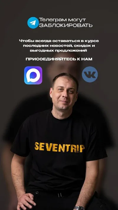 Уже все слышали о возможной блокировке 📱 телеграм?! Чтобы всегда быть в курсе последних новостей, акций и выгодных предложений ПРИСОЕДИНЯЙТЕСЬ К НАМ: 📱 ВК - https://vk.com/77seventrip77 💜 MAX
