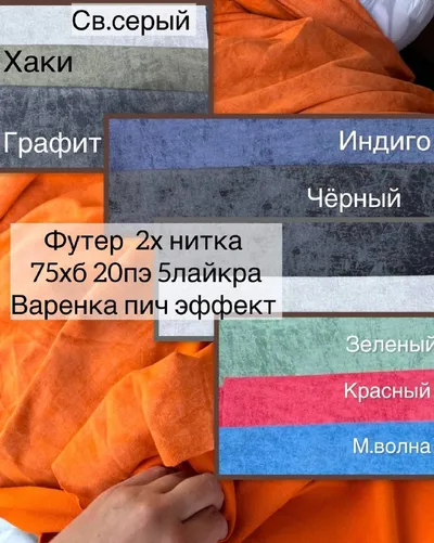 КРУТАЯ НОВИНКА: футер 2х нитка варенка с пэ и пич эффектом ✔️Футер 2х нитка 75хб/20ПЭ/5лайкры ПИЧ эффект - 9,5$ ✔️От 500кг цена 9$ ✔️Все цвета в наличии ✔️Качество как всегда 🔥🔥🔥 🔔 Контакты: