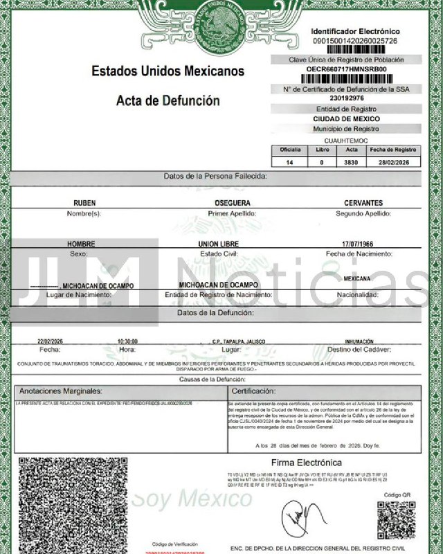 🇲🇽💀Ночью появилась информация, что Лайша Мишель Осегера Гонсалес, младшая дочь покойного наркобарона Эль Менчо, явилась с адвокатами, чтобы забрать тело своего отца, бывшего лидера картеля «Новое п