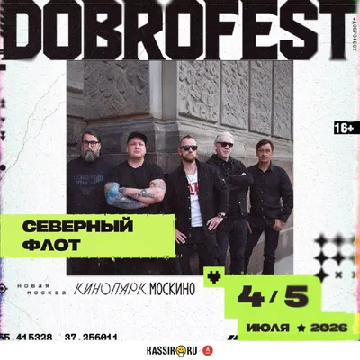 Отличные новости! Добавили в наше летнее фестивальное расписание Dobrofest, который пройдёт 4 и 5 июля в Кинопарке Москино (Новая Москва). Билеты уже тут: severnyflot.com
