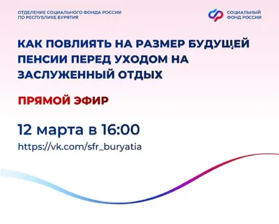 ❓В вопросах назначения пенсии разберемся в ходе прямого эфира в ВК 12 марта с экспертом Отделения СФР по Бурятии Надеждой Юрьевной Волик - начальником отдела оценки пенсионных прав застрахованных лиц