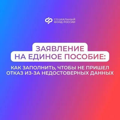 Рекомендации по заполнению заявления на единое пособие Для положительного и быстрого решения проверяйте все данные, которые вы указываете в заявлении на единое пособие: они должны совпадать с инфор