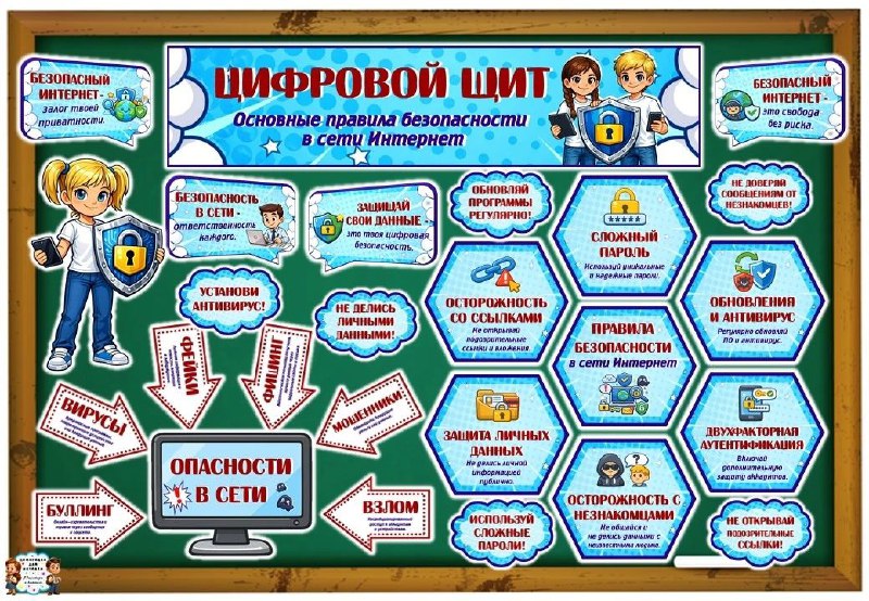 Оформление доски "Цифровой щит. Основные правила безопасности в сети Интернет" 👉Скачать: https://max.ru/shablony_top
