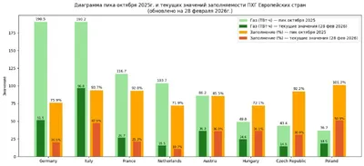 УРОВЕНЬ ЗАПОЛНЯЕМОСТИ ПХГ ЕВРОПЫ УПАЛ НИЖЕ 30% По данным Gas Infrastructure Europe (GIE), к 28 февраля уровень заполненности подземных хранилищ газа Европы опустился ниже 30%. Уровень заполненности
