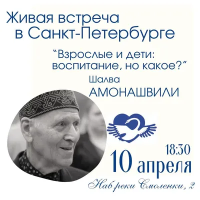 💎 Друзья! Приглашаем Вас 10 апреля на очную встречу с Шалвой Александровичем Амонашвили "Взрослые и дети: воспитание, но какое?". 🚩 Для кого семинар: для родителей и педагогов, которым важно сохра