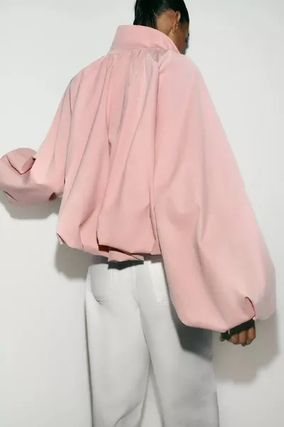 понравился такой бомбер в Zara. И я вот думаю, я его правда хочу или помешательство на пудровом оттенке розового 🎀 стоит около ~7000₽ ❤️ - надо 💅🏻 - не надо *спасибо вам, заказала у байера! Жду!