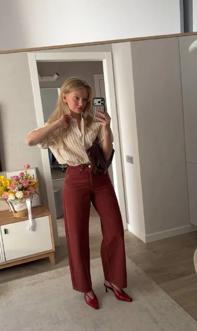вот это заглянула я в Be free и Sela ⚡️🤭 не все оттуда, но много! Как вам?) бордовые джинсы sela белая юбка sela рубашка в полоску sela красные сапоги befree ассиметричное платье befree зеленые д