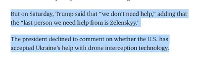 Трамп отверг содействие Украины по войне с Ираном… «Последний человек, от которого нам нужна помощь, — это Зеленский». В интервью NBC News он заявил, что «нам не нужна помощь».