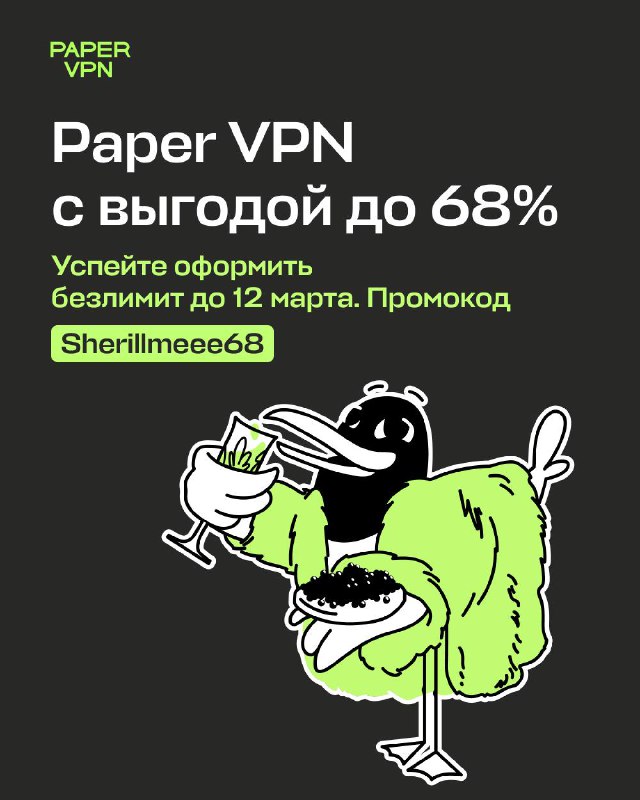 Любимки, остались считанные минуты до окончания акции у Paper VPN Успейте купить подписку с выгодой до 68 % до 12 марта Я уверена, что вас уже поздравили кринжовыми поздравлениями про «красоту и ук