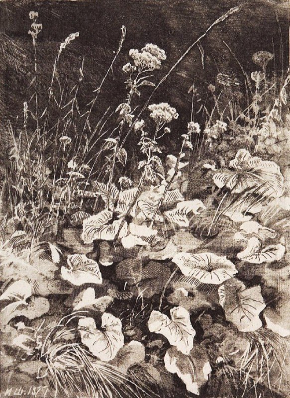 "Белые цветы", 1877 Офорт, пропечатывание, травленный штрих, сухая игла. 12 x 9 см 📍Государственная Третьяковская галерея, Москва 🖌Галерея Ивана Шишкина