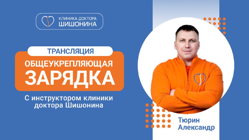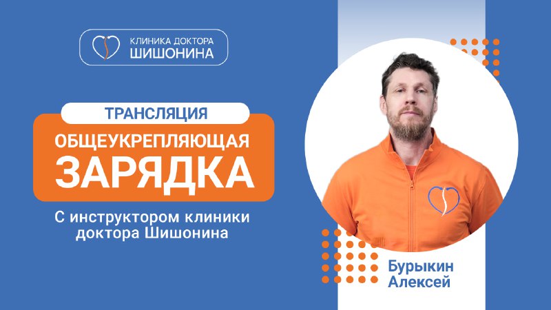 1️⃣5️⃣ минут движения, которые могут изменить самочувствие на весь день! Друзья, приглашаю вас на сегодняшнюю онлайн-зарядку с инструктором-методистом по ЛФК "Клиники доктора Шишонина" — Алексеем Бур