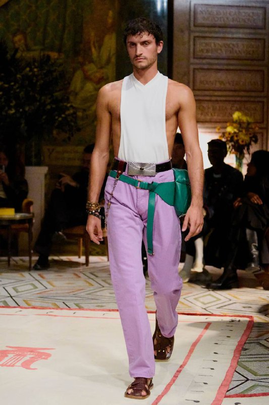 Редкий случай, когда подиумные вещи («отрезанные» с боков топы) нормально адаптировали для продажи — Versace не просто сделали вместо вариантов с шоу классические белые и красные танк топы, а предъяви