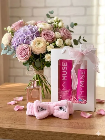 Подарочный набор MYMUSE к 8 Марта 🌷 Нежный, стильный и продуманный до мелочей — идеальный подарок, который точно порадует. В наборе: • Шампунь MY MUSE. • Термозащита для волос MY MUSE. • Мягкая кос