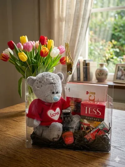 Стильный подарочный бокс. Еще один вариант с мишкой. Идеальный подарок, который говорит о чувствах без лишних слов. Стильный и уютный набор, собранный с заботой и вниманием к деталям. В наборе: • Мя