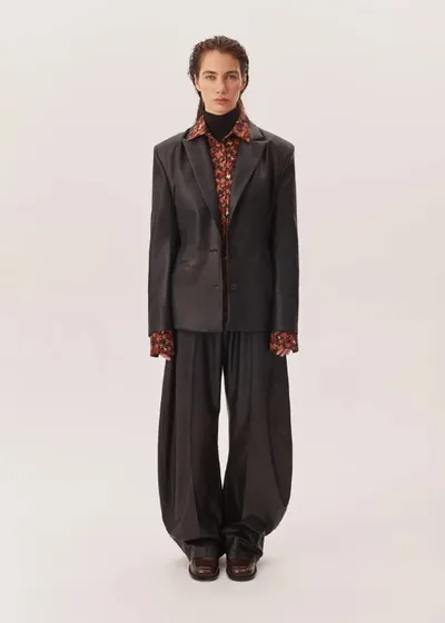 Что я нашла! Брюки-подковы в экокоже еще не видела! Нашла у бренда Eve&Esther, кайфучие! Такая форма все еще актуальна, так что рассмотрим. Не стоит бояться такого силуэта — у меня есть похожие, ношу