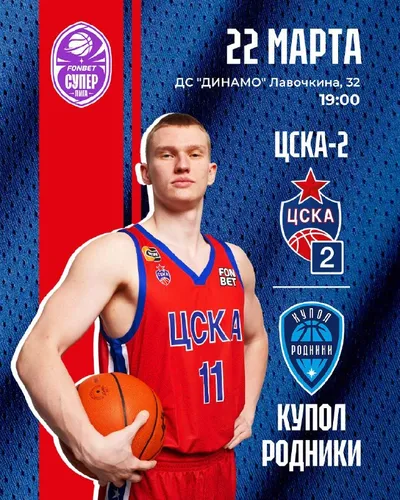 🔴🔵 Дубль красно-синих принимает «Купол-Родники» в заключительном домашнем матче регулярного чемпионата. 🗓️ Завтра, 22 марта, в 14:00 мск ЦСКА-2 проведёт последний домашний матч в рамках «регулярк