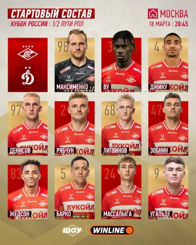 💥 Массалыга будет терзать оборону «Динамо»! 🇦🇬 А Солари, как и рекомендовал Сослан Гатагов, остался на скамейке 😳 Удивил Карседо стартовым составом? ❤️ Спартак Шоу