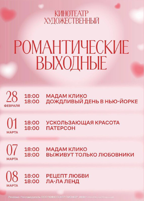 Идем на свидание в Москве💖 В самое романтичное время в году — с 14 февраля по 8 марта в кинотеатре «Художественный» проходят «Романтические выходные» — специальные показы фильмов для влюбленных (в с