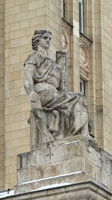 Главные жители высоток🤩 Бежали в Дом Наркомфина мимо высотки на Баррикадной и поймали себя на мысли, что никогда не разглядывали как следует статуи. Делимся кадрами, а сами второй день размышляем,