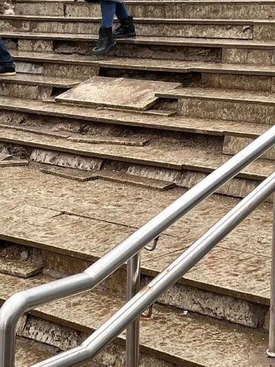 🤯 Лестничный апокалипсис у ТЦ «Щука» Всё покрытие лестниц у торгового центра разрушено — плитки разломаны, подниматься и спускаться крайне неудобно. Плохо грузит Telegram? Читай в MAX 📲